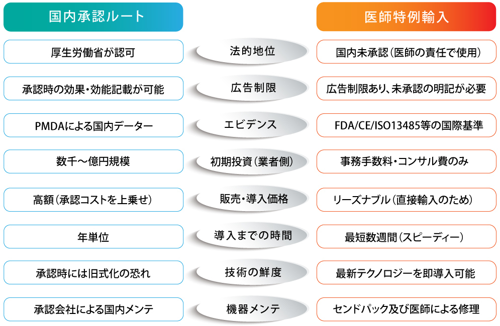 「国内承認機」と「医師特例輸入」